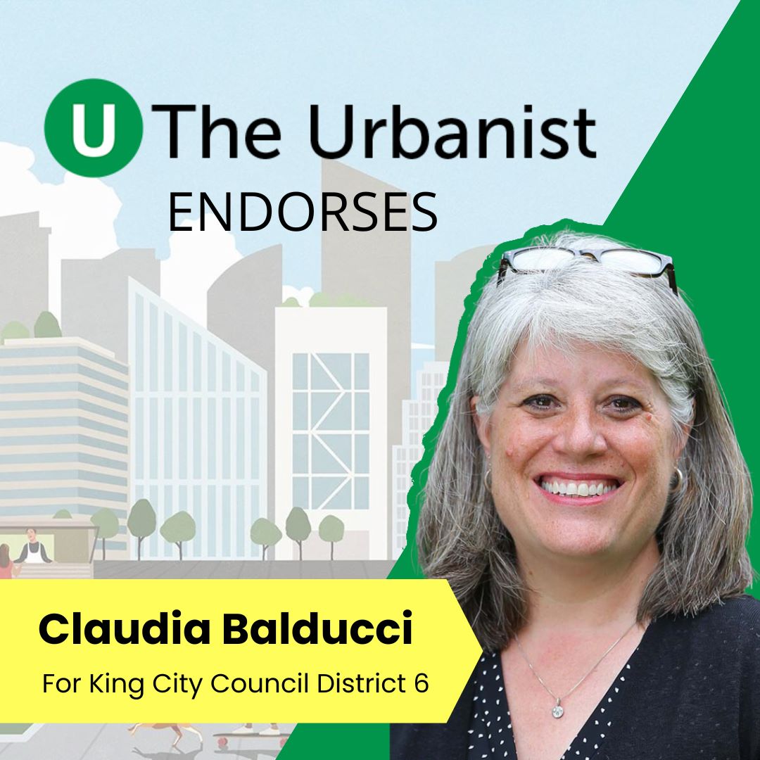 The Urbanist endorses Claudia Balducci for King County Council in District 6. (Graphic by Hannah Sabio-Howell)