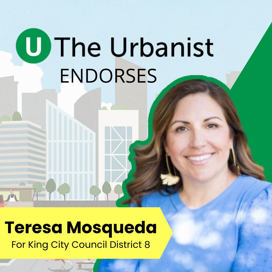 The Urbanist endorses Teresa Mosqueda for King County Council in District 8. (Graphic by Hannah Sabio-Howell)