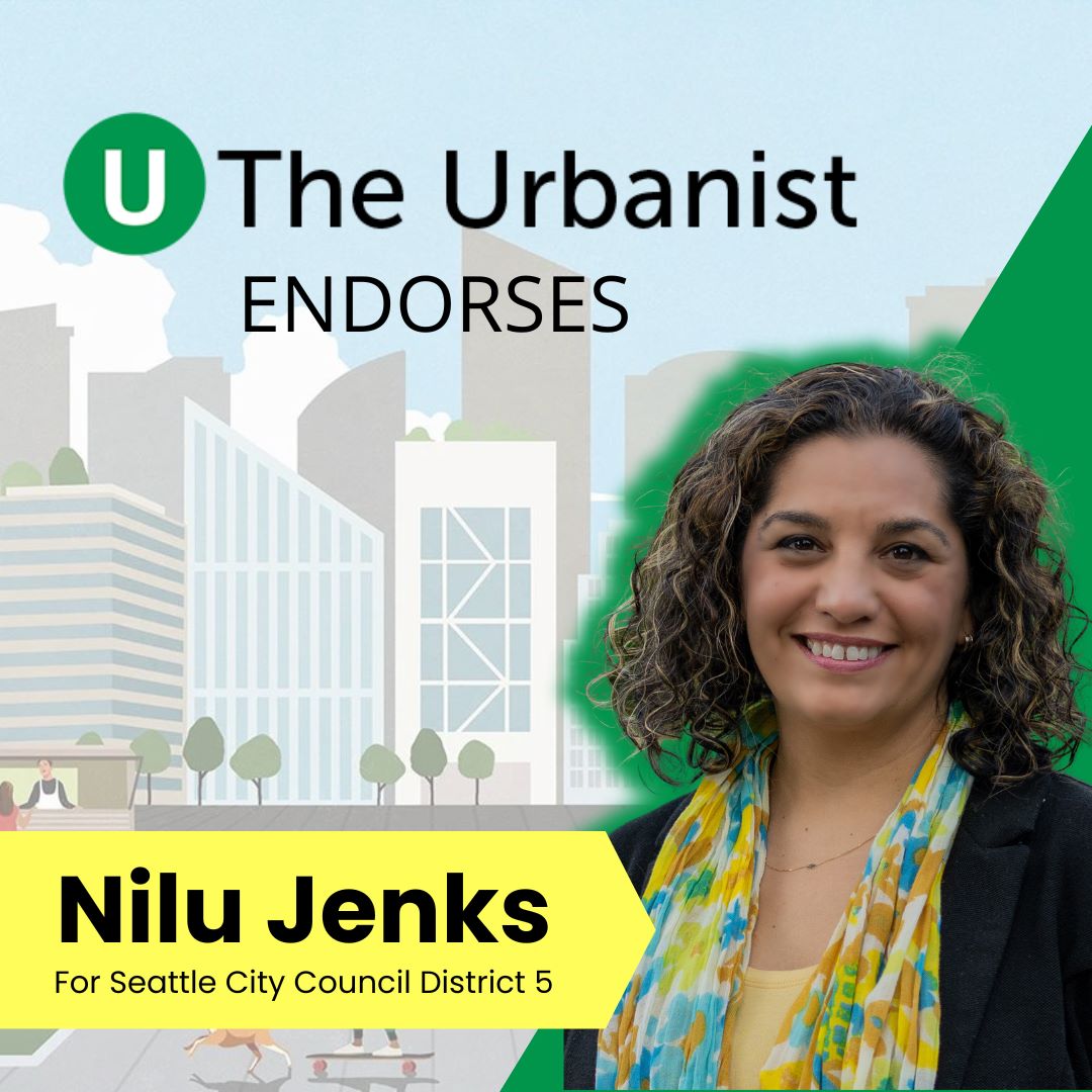 The Urbanist endorses Nilu Jenks for Seattle City Council in District 5. (Graphic by Hannah Sabio-Howell)