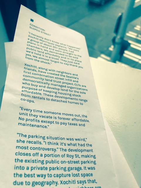 Housing policy is full of difficult jargon, counterintuitive relationships, and if you finally become confident enough to advocate for changes, city government is quite intimidating to access. Lara’s art exhibit is an example of how people’s imaginations can be engaged to spur action. When you’re new to thinking about how to grow our cities, conversations feel exclusive and off putting to non-wonks. Seattle urbanists often talk about welcoming communities; Myra Lara’s exhibit was one of the most welcoming urban planning events I’ve attended. Learn more about Myra Lara www.myralara.com // @nullthread // Support the artist by donating here.Ghost streets, alleys, parking lots, plus remnants of a zoning code long past….where to build if the city says no? Where can we live? pic.twitter.com/yczPqHgGzk