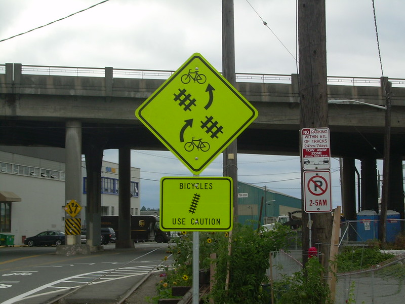 One of the city’s most dangerous places to ride a bike could get significantly safer in just a few short weeks — if quick action by the Seattle City Council proposed this week is able to move forward. The area in question is directly under the Ballard Bridge at a stretch of railroad embedded in the roadway that since 1997 has been operated under an agreement with the city by the Ballard Terminal Railroad. These railroad tracks are the greatest safety hazard for the long-problematic “Missing Link” stretch of the Burke-Gilman Trail, and they have led to innumerable serious injuries over the past decades.