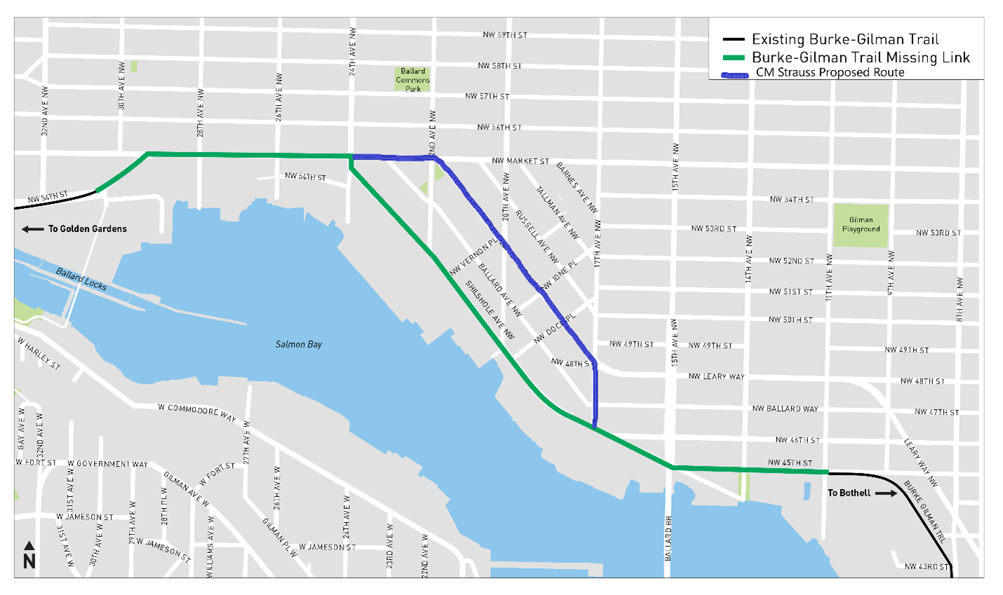 Strauss recently received buy-in from the Harrell administration to move forward with exploring a potential alternate design for the Missing Link that skips most of Shilshole Avenue and instead is routed onto 17th Avenue NW, Leary Avenue NW, and NW Market Street. That route has been long-preferred by business owners in industrial Ballard, like CSR Marine, that have been involved in the ongoing litigation. But either route will rely on Shilshole underneath the Ballard Bridge.