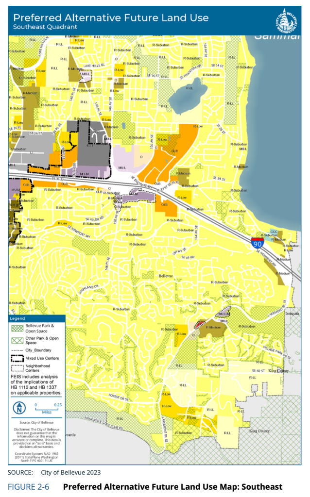 Built into the preferred growth strategy is compliance with state mandates for middle housing and accessory dwelling units as prescribed by House Bills 1110 and 1337. In short, Bellevue is required to allow: