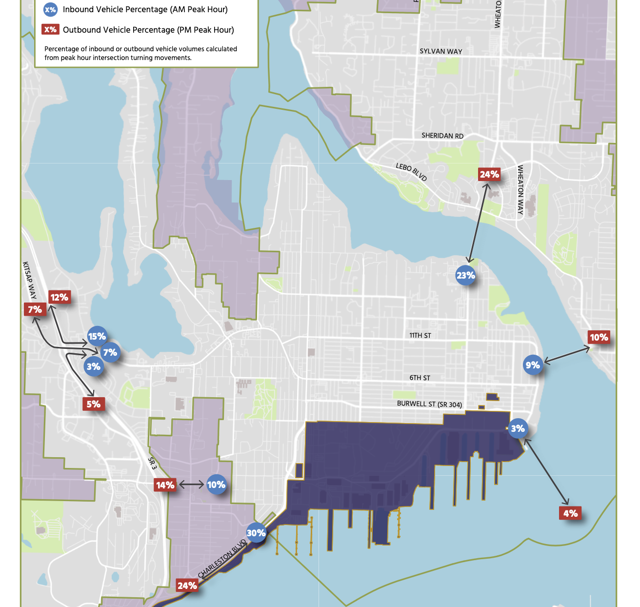 Rush hour traffic patterns of private vehicles into Central Bremerton. (City of Bremerton)