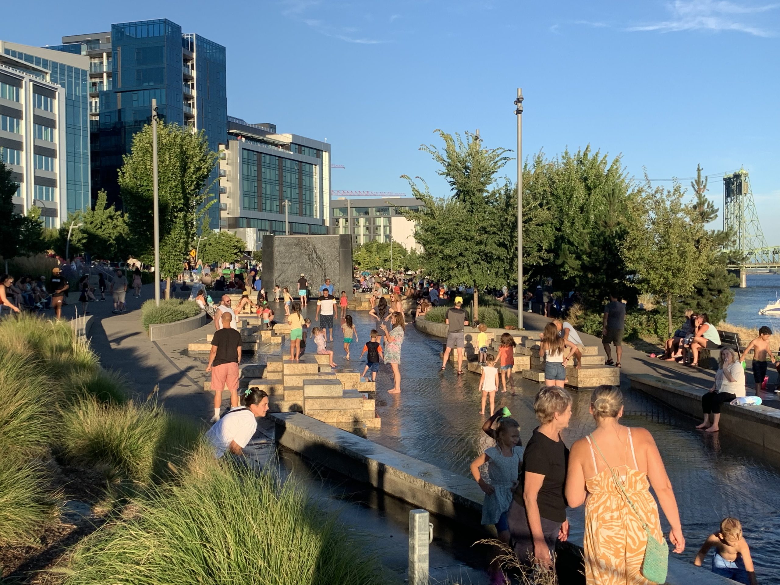 And across the rebuilt train trestle separating Waterfront Vancouver from the city’s historic downtown, growth was evident too. The crowds of people that had been overspilling the area near the public bandstand in Waterfront Park were also making their way to the downtown’s restaurants, bars, and cafés on the pedestrian-friendly streets close to Esther Short Park. As I explored the area, people were eager to talk to me about the changes that had come to the neighborhood. One man who was enjoying a beer with his dog at a sidewalk cafe told me he’d lived in Vancouver his entire life and this summer was the first time he’d seen downtown really come alive.