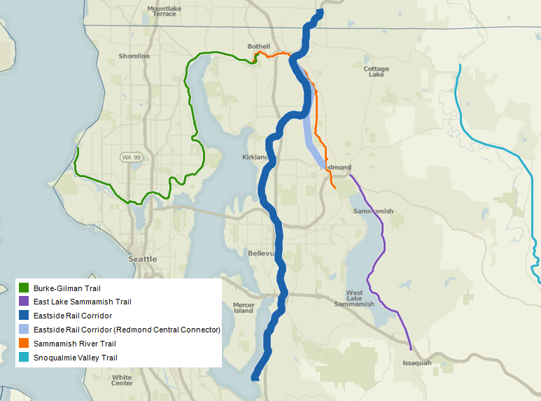 The newly opened segments of the trail in Sammamish mean trail users can connect between Isssaquah, Redmond, Kirkland, and Bellevue with off-street trail connections. (King County)