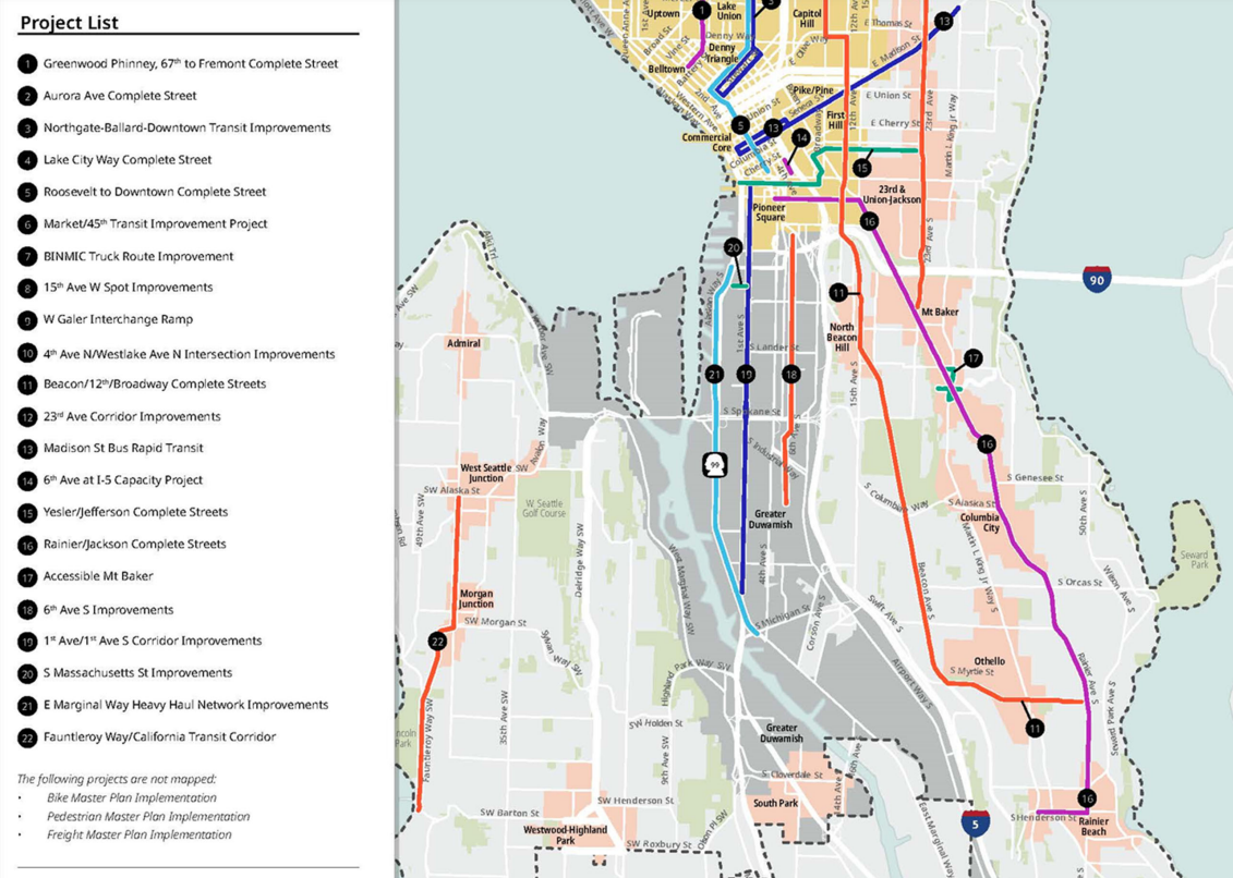 The project list for potential impact fees was recently reviewed by a council committee. It includes a number of multimodal projects but also freight and capacity projects. (City of Seattle)
