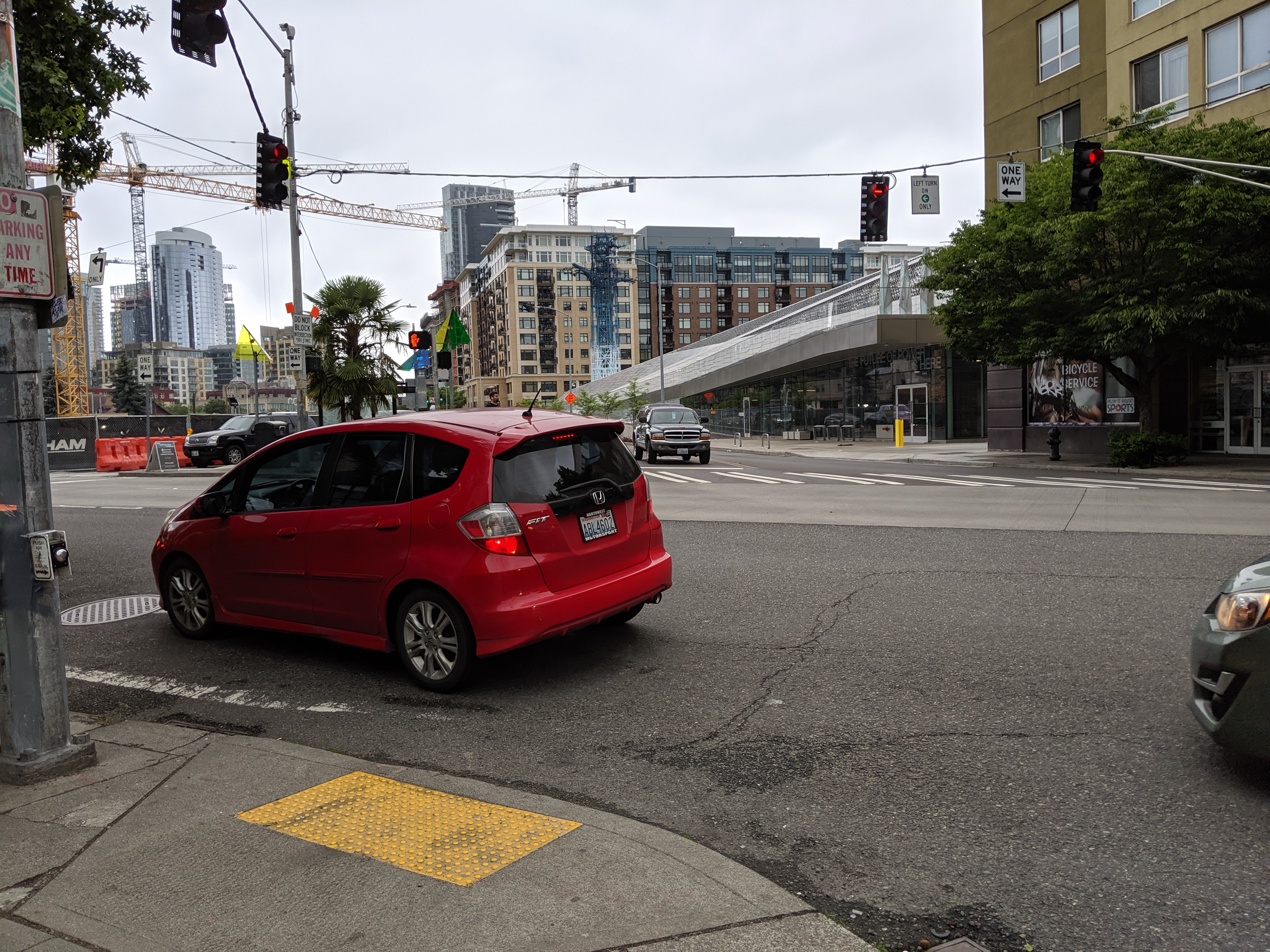 Denny and Stewart hasn’t changed much since then, much less since it was named Seattle’s worst intersection in 2017. However, other winners of the “worst intersection” competition have changed. The Seattle Department of Transportation (SDOT) just finished a redesign project at last year’s winner, Rainier & 23rd. Back in 2015, when the “worst intersection” was from a pedestrian perspective only, Denny and Terry won and since then had a pedestrian half-signal installed along with left-turn restrictions.