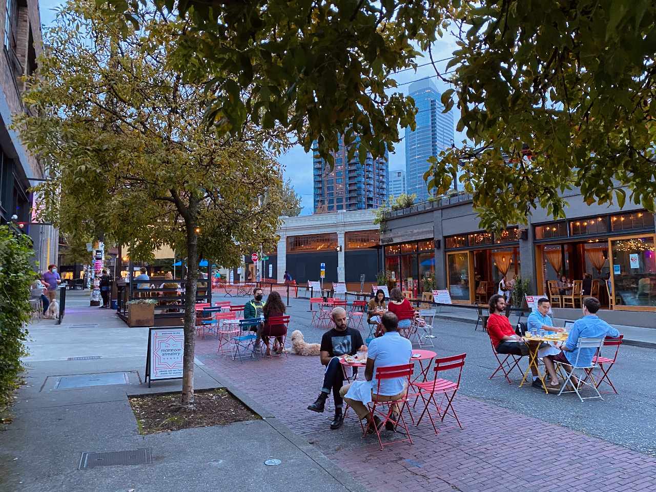 Seattle residents got a very tiny taste of what Melrose could have become during the early months of the Covid-19 pandemic, when SDOT issued a permit for nearby restaurants like Mamnoon and Terra Plata to be able to utilize nearly the entirety of the street for outdoor dining. Traffic patterns in the neighborhood adjusted, and the block was turned over to people. Even though the setup only lasted for a few weeks in mid-2020, it showed the vast potential that the street had — and still has.