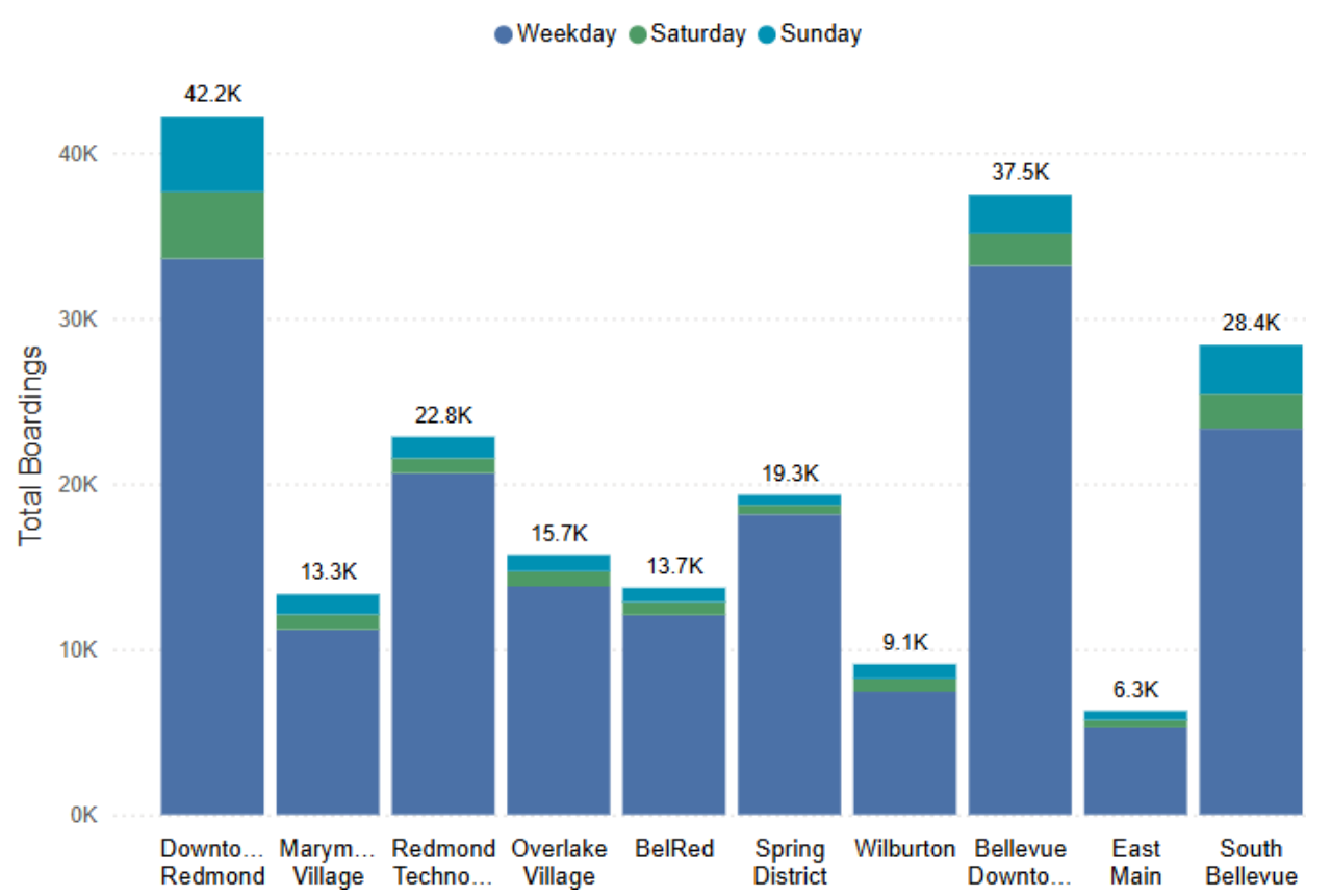 While ridership trends will likely shift significantly once the 2 Line provides a one-seat ride into other parts of the region, the early signs point toward Downtown Redmond becoming a major anchor of the entire light rail network, with its lack of significant attached parking an asset rather than a liability.