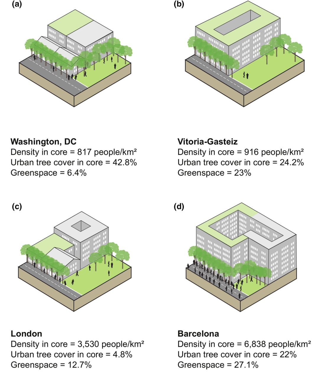 For instance, a 2023 study in the journal ‘Nature and People’ analyzed U.S. neighborhood density and tree abundance. Unsurprisingly, the study showed that denser neighborhood blocks had less space for trees. Yet, this pattern was astonishingly weak. Some dense neighborhoods smoosh houses tightly, filling the gaps with concrete instead of trees.