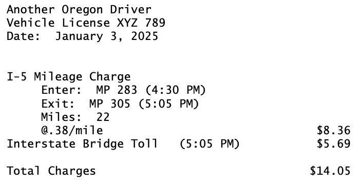 Here’s what your bill could look like for a trip from Wilsonville to Vancouver in just a few years.