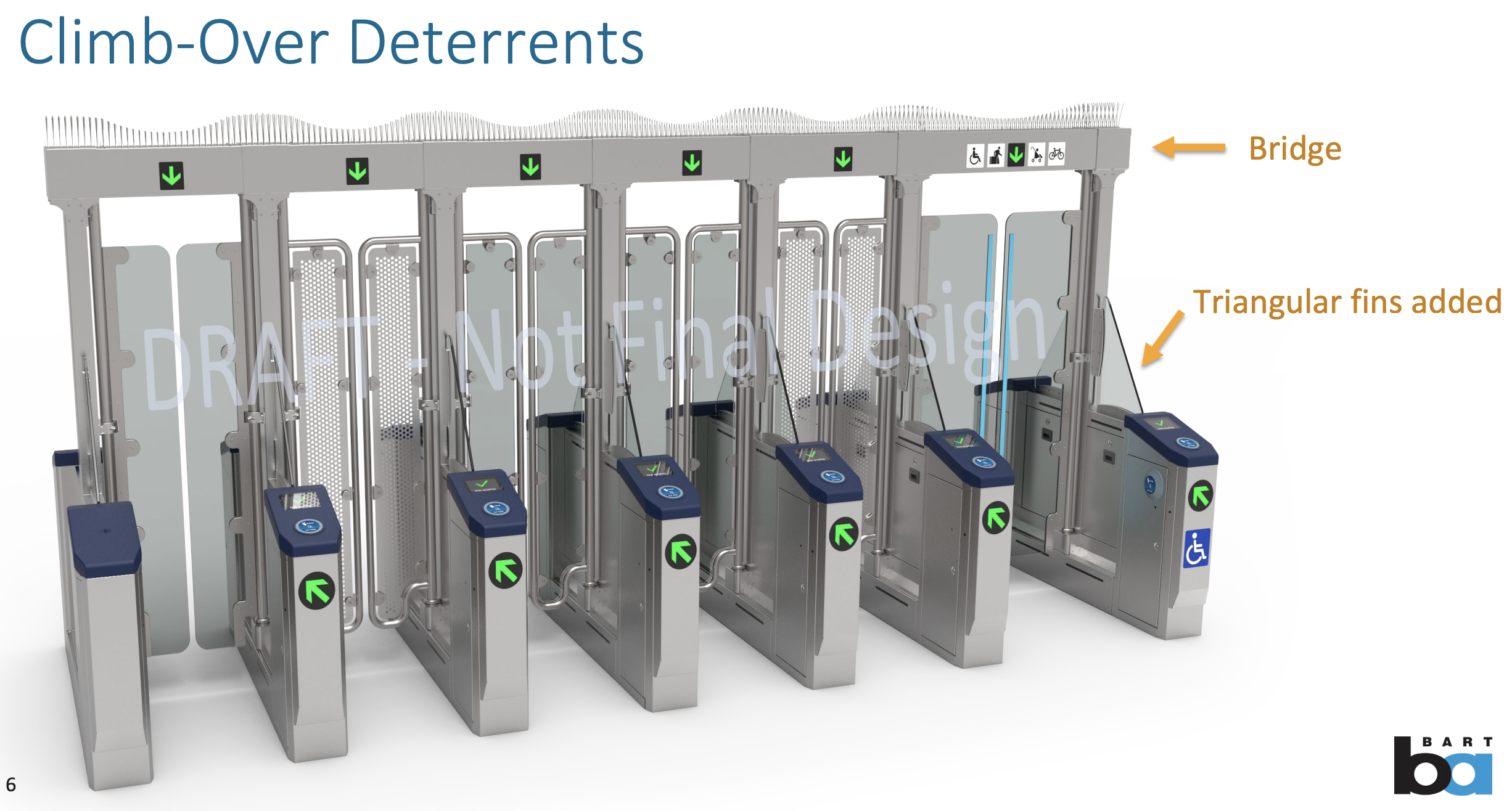 San Francisco’s BART system is in the process of hardening fare gates, as contemplated here with a draft prototype. (BART)