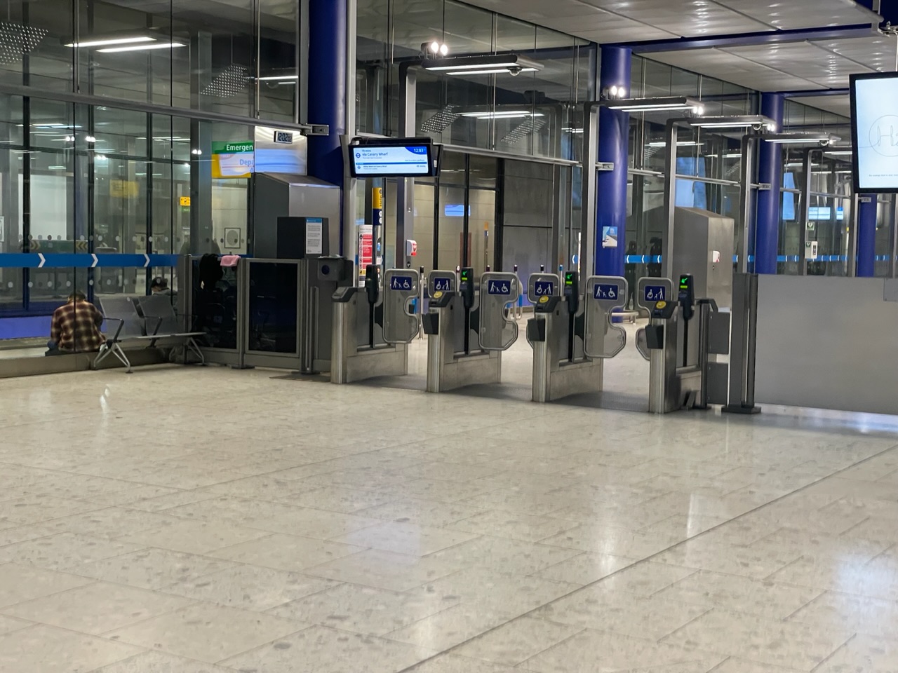 Fare gates at Heathrow Airport for London’s new Elizabeth line. (Stephen Fesler)