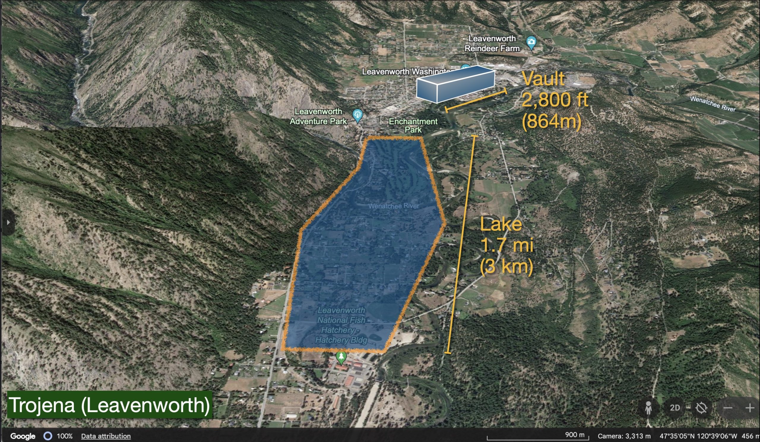 More illustrative may be Washington’s beloved Bavarian town of Leavenworth. The Vault proposed for Trojena is the length of US 2 from Gustav’s to McDonald’s and though the decorated town center. It will be about half the height of the town’s ski hill and host most of the development’s 3,600 hotel rooms. Leavenworth has just over 1,200 rooms. The artificial lake would cover the distance from Leavenworth’s golf course to the fish hatchery. Sadly, there is no indication that the Kingdom will be waiving its strict alcohol policy to compete with Leavenworth’s liter beers, although wine and champagne may be coming to NEOM.