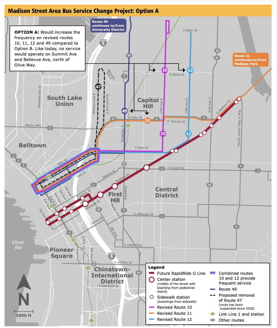 King County Metro recently unveiled its final proposal for a bus restructure in parts of North Seattle and North King County as well as a second round bus restructure proposal for Capitol Hill and First Hill. Those efforts are meant to complement the Lynnwood Link Extension and RapidRide G Line opening in 2024. The problem with them, however, is that the restructures are sacrificing local bus service to support new high capacity transit services instead of building upon the local bus network to support them.