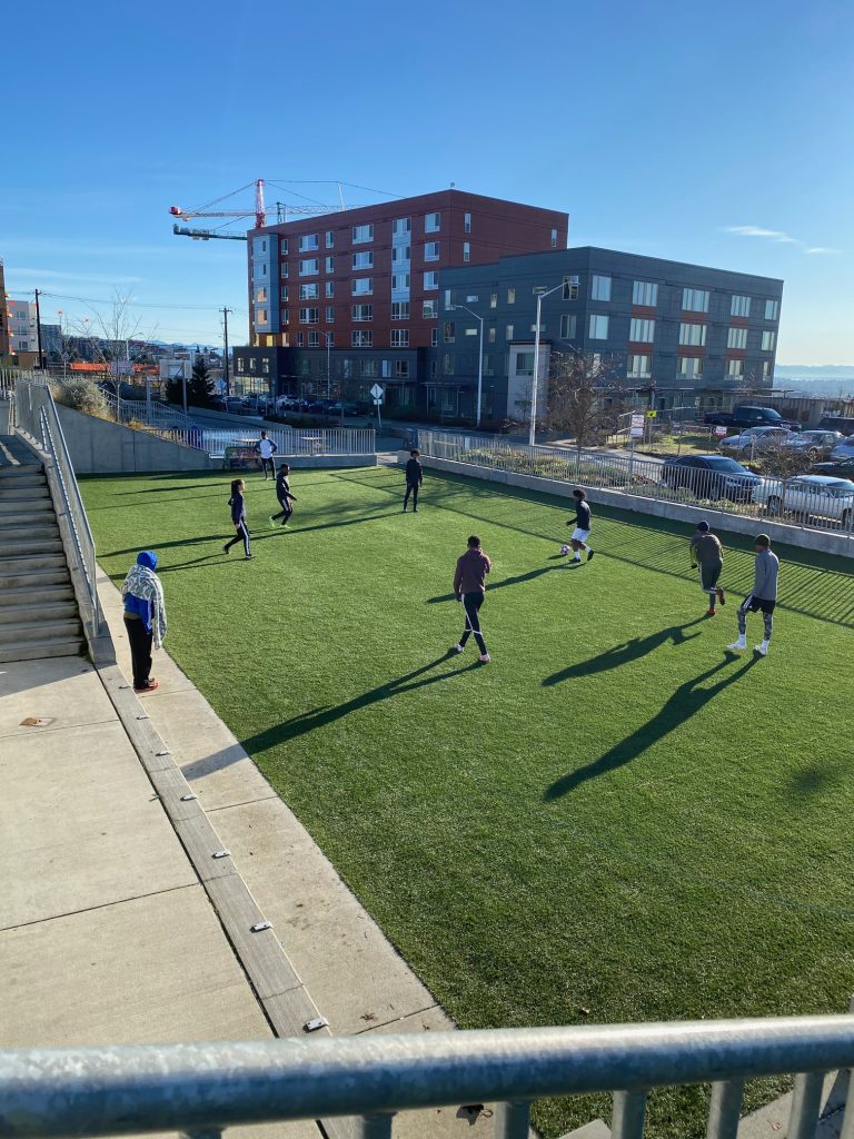 The pitch is part of the RAVE Foundation, a Sounders-affiliated charity that built the mini pitch in the community. It was designed knowing that soccer — or football (depending on where you’re from) — is an international language that brings global communities together. People of all ages, genders, ethnicities, and skill levels play. The demographics of Yesler Terrace feature people from all backgrounds, origins, economic statuses. The pitch is part of their sense of community.