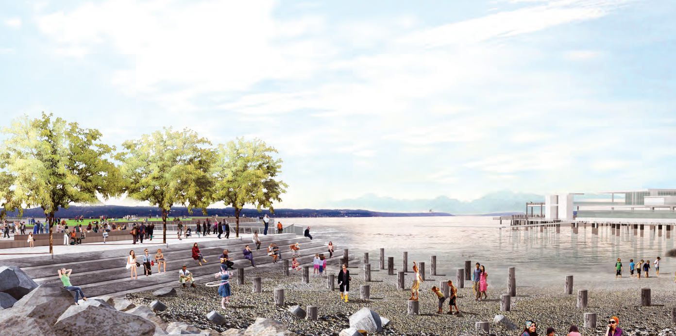 Mayor Bruce Harrell’s office did not respond to a request for more details on how the City is planning to work with WSDOT, Kitsap Transit, and other stakeholders to advance its goals for creating more open space at this end of the new waterfront. But the dream of 2015 is still alive, it seems, albeit a scaled-back dream more in keeping with the ambitions of today’s Seattle.