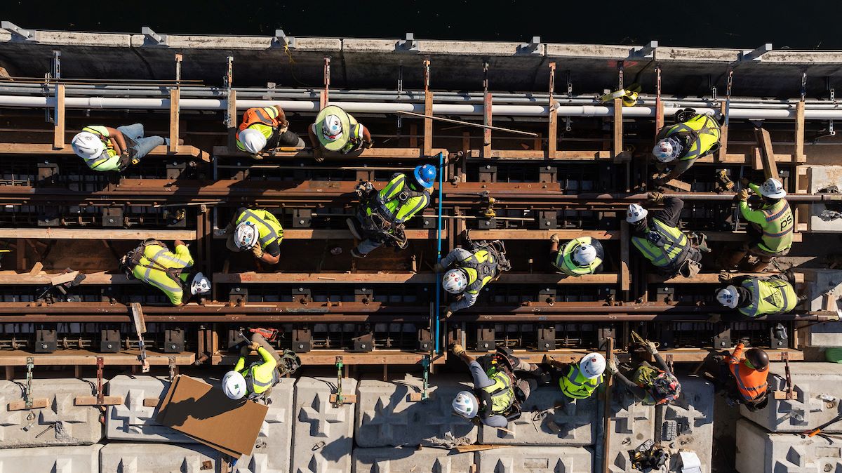 The pivotal section of track on I-90, a unique piece of infrastructure that automatically adjusts in response to the movement of the floating bridge, has proven the trickiest segment of the 2 Line to advance. In 2022, Sound Transit announced that defective plinths along the bridge would all need to be fixed, which resulted in several years of delays. The concrete plinths fasten light rail tracks in place.