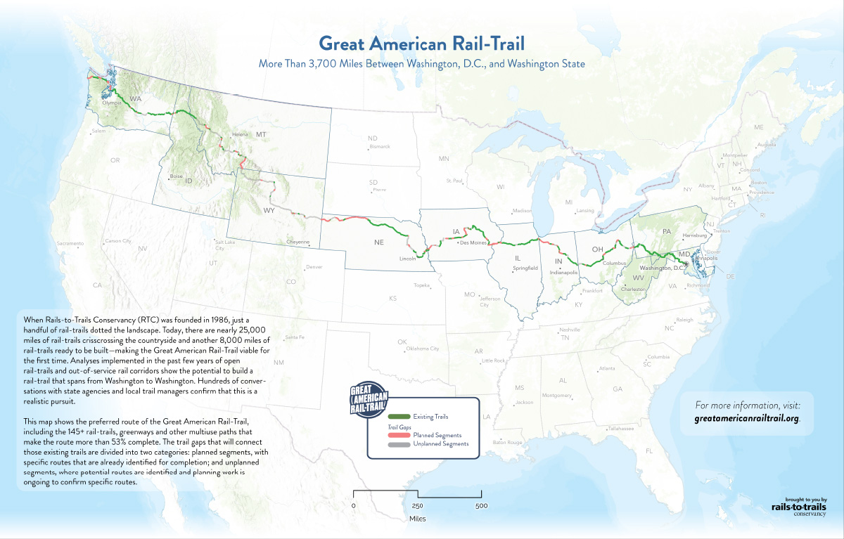 “Outdoor recreation contributes $20 billion to the state economy,” Cantwell said. “This grant will help complete the Great American Rail Trail in the State of Washington, generating an additional 240 jobs and resulting in an anticipated additional $25 million in tourist spending.”