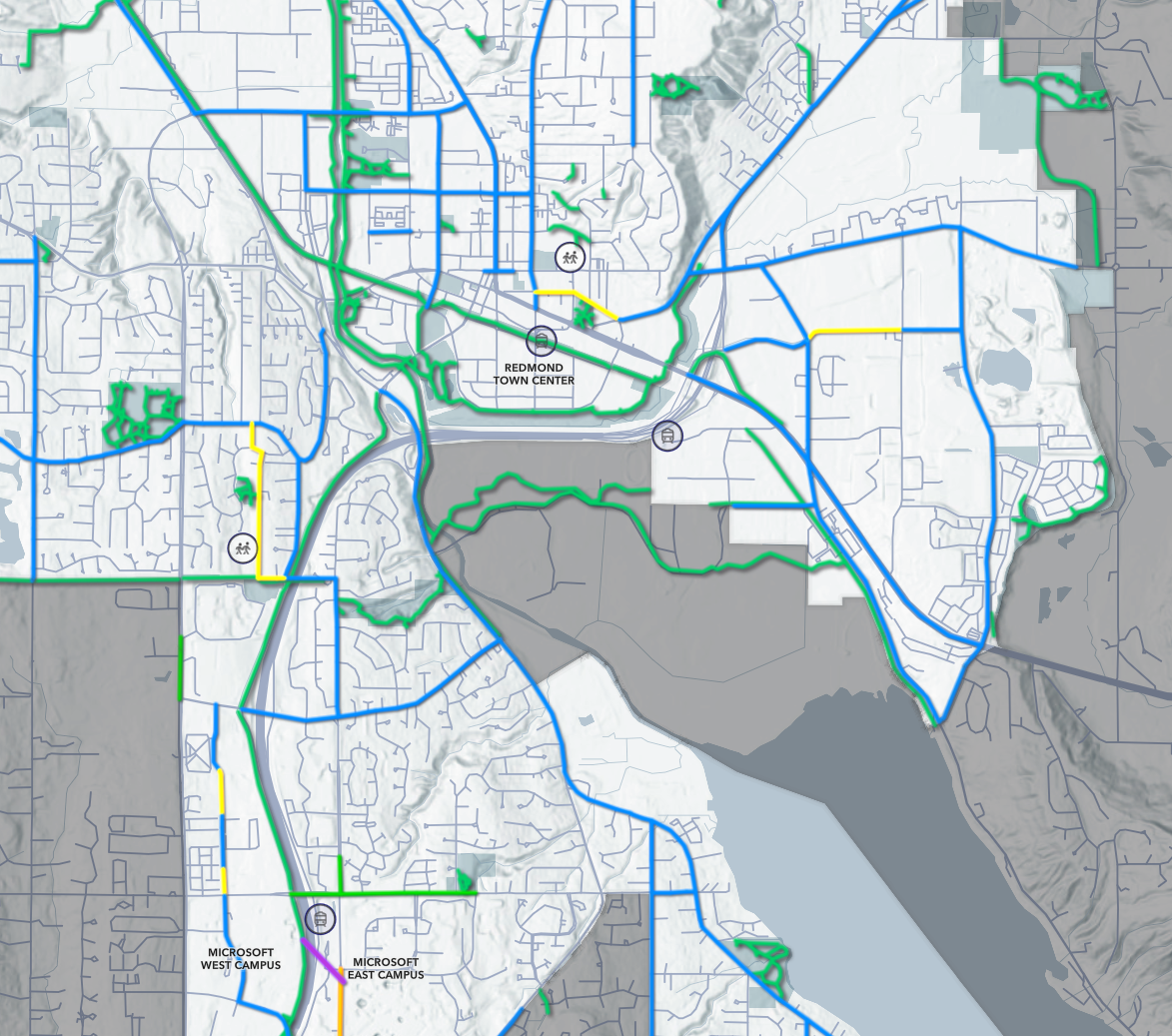 With a direct connection to Eastrail, Redmond is well positioned to benefit from the planned extensions of that county-led regional walking and biking highway that are set to come online in the coming years, including connections across I-90 that will finally bridge Renton with the central Eastside, and a northern extension of Eastrail through Woodinville up into Snohomish County.
