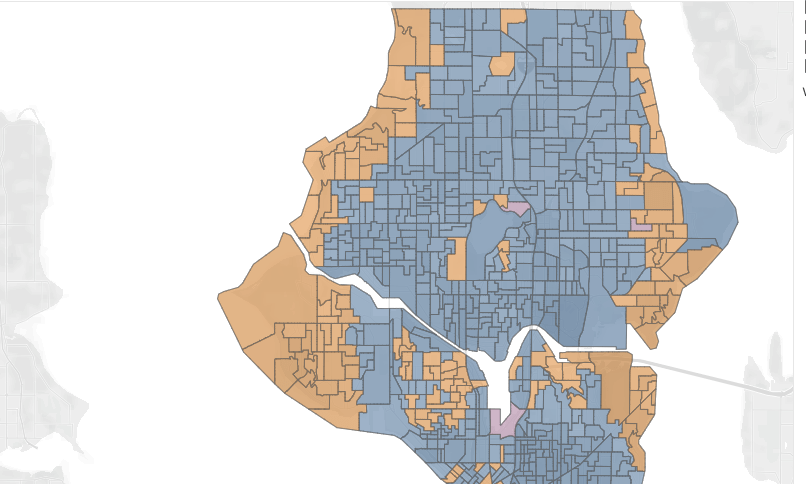 A look back at the 2017 results map shows Jenny Durkan precincts ended up being Harrell precincts four year later, plus some South Seattle additions. History has repeated itself.