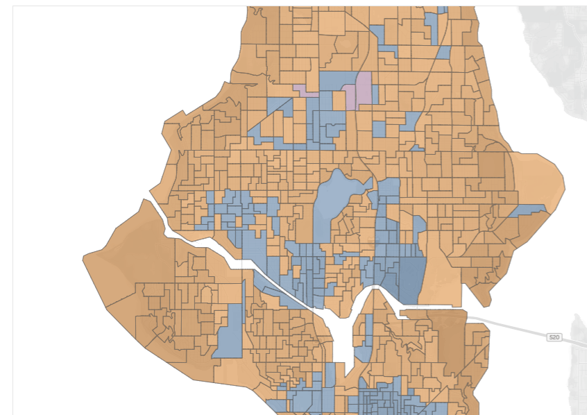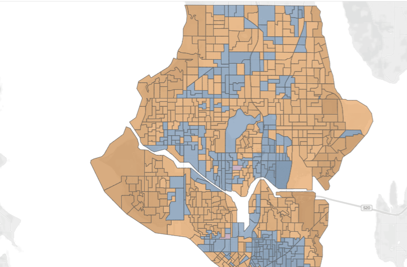 As The Urbanist notes every election, the results map continues to mirror Seattle’s zoning map. Single family zoning and more conservative voting patterns seem to go hand-in-hand, especially in the wealthier parts of town. Areas with urban zoning went for progressives, with the exception of Downtown. Perhaps a Frazier factor is in play, with residents of Downtown apartments and condos being wealthier than multifamily dwellers citywide. Homelessness also could have been a potent wedge issue there.
