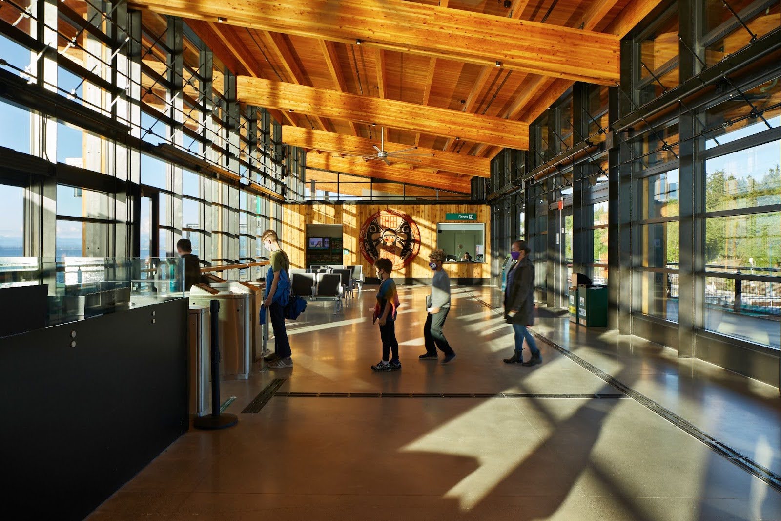 Main hall at the Mukilteo Ferry Terminal. (Benjamin Benschneider)