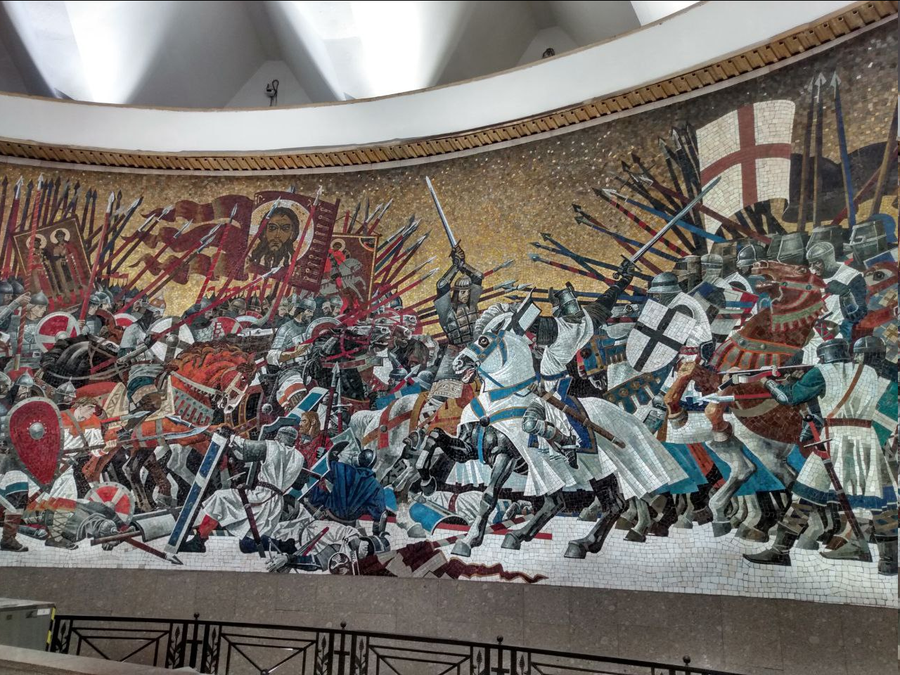 In addressing how historical narratives can both create beautiful public spaces while taking steps to heal historical trauma, Saint-Petersburg offers the form of Alexander Nevsky. He holds unique local cultural and historical significance for his victory at The Battle on the Ice against marauding German crusaders, mirroring the Soviet defeat of the genocidal Nazi German invasion from 1941-1945. The Nazi invasion has left a deep psychological scar on the city which persists to this day: For three years the Nazi armies had cut off the city during the horrific siege of Leningrad, and millions of men, women, and children died, many starving to death.