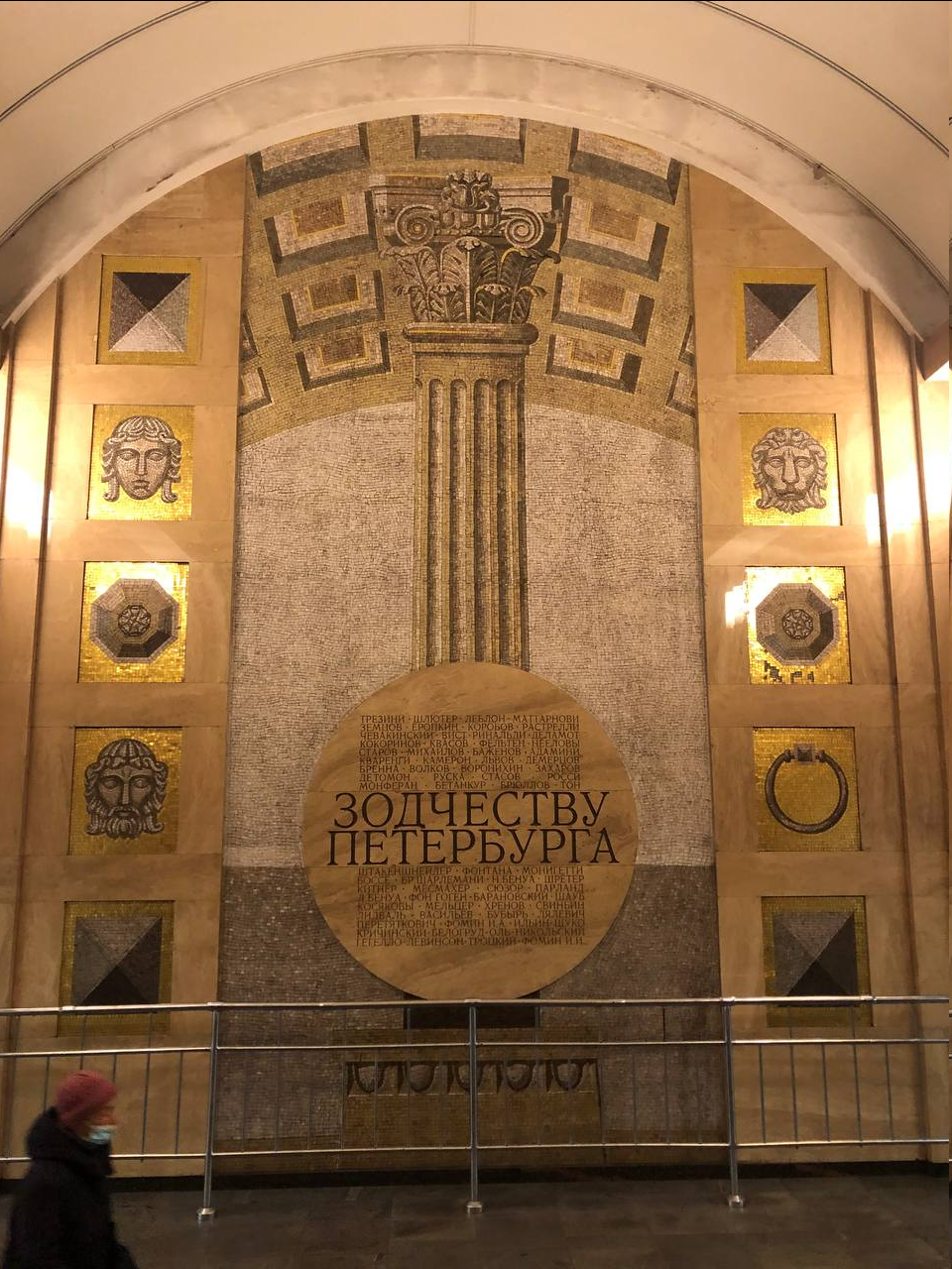 By contrast, ideology and architecture converse loudly and deeply in the halls of Petersburg’s metro system. Far more often than Lenin, a symbol in and of himself, one finds visual depictions venerating common working people – scientists, teachers, oil workers, electrical engineers, miners, and athletes. Though by no means a panacea for classism, the enduring beauty of these tributes has permitted the better angels of their ideological natures to transcend the often flawed political individuals who built them. They indelibly stitch what had been an ideological statement, respect for proletarian workers, into the region’s culture and history. It is truly revolutionary to behold the architecture of imperial palaces honoring the people who built them, rather than the patrons who ordered them. That is what an effective architectural ideological statement looks like.