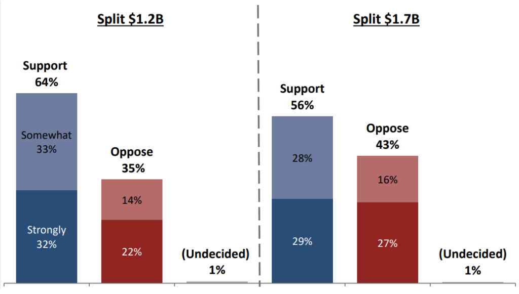 Much can change from early polling to final election results, so polls can only provide a rough snapshot. However, it’s worth noting that the Seattle Housing Levy ended up passing by a margin 12 points greater than what polling from last summer found, with 69% of voters approving in November. The 2023 Seattle Housing Levy more than tripled the size of the previous housing levy in order to compensate for rising construction costs in Seattle. This suggests a comfortable cushion for a transportation measure that could double the current levy in size.