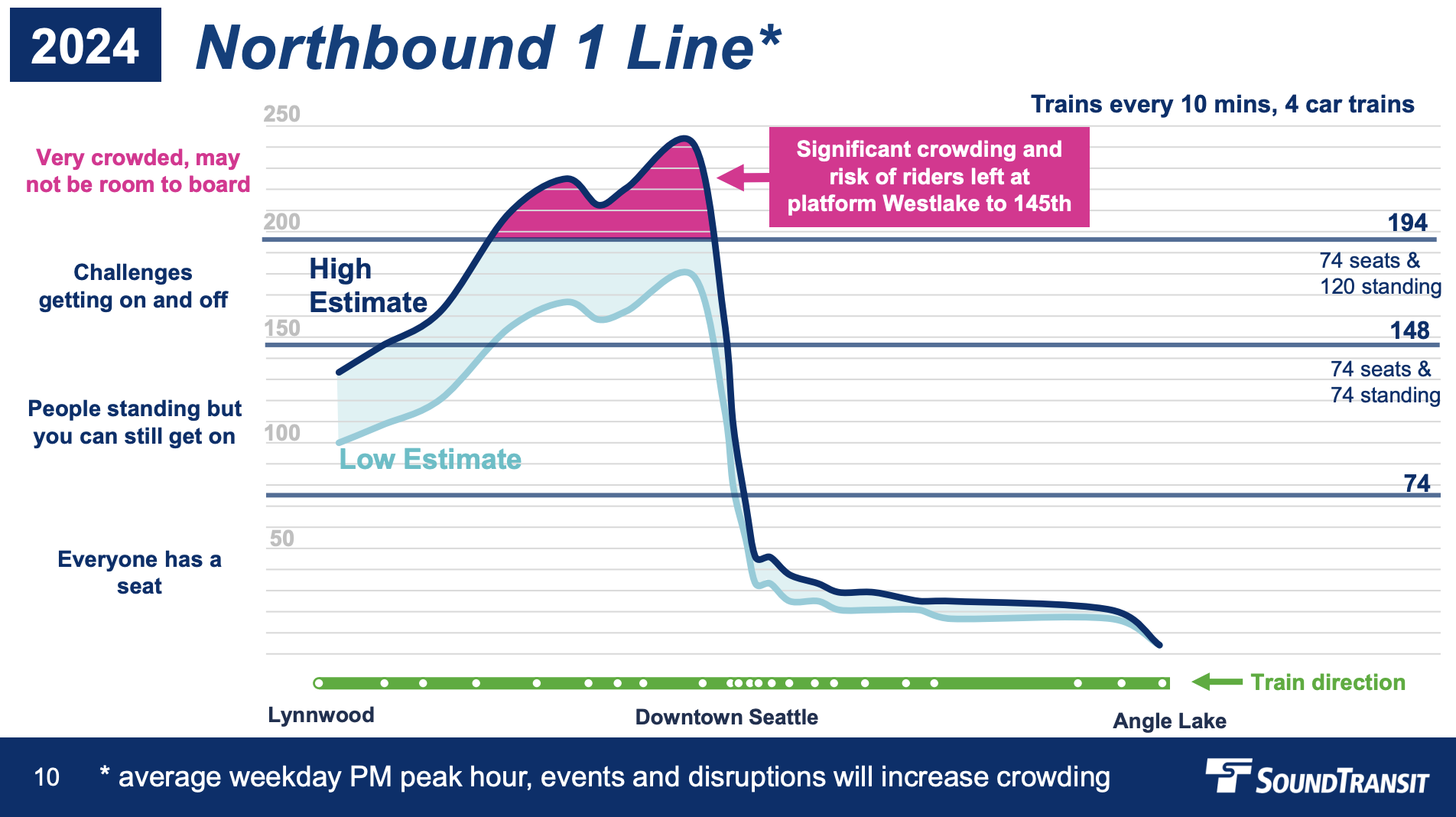 Crowding is forecasted to be a severe problem on 1 Line in 2024 when the Lynnwood Link Extension opens. (Sound Transit)
