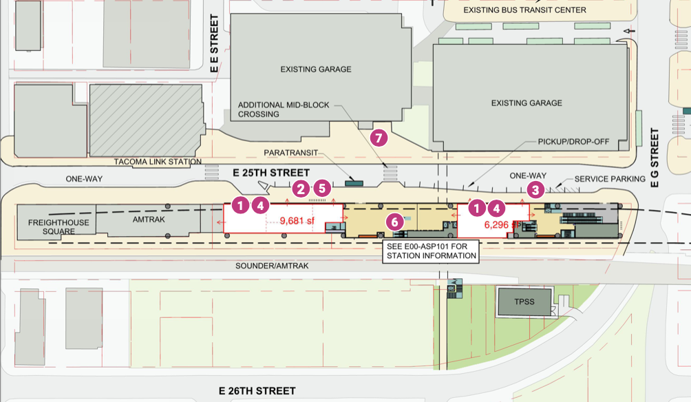 The report does offer a small window into how Sound Transit could integrate retail into stations at Tacoma Dome, International District-Chinatown, and Westlake. These concepts though are really more illustrative than anything because the Link expansion projects have seen substantial refinements since the report was developed, so it’s important to caution that retail might not be delivered as shown in the document. Nevertheless, here are some of the key things the report indicates could be realized in some form: