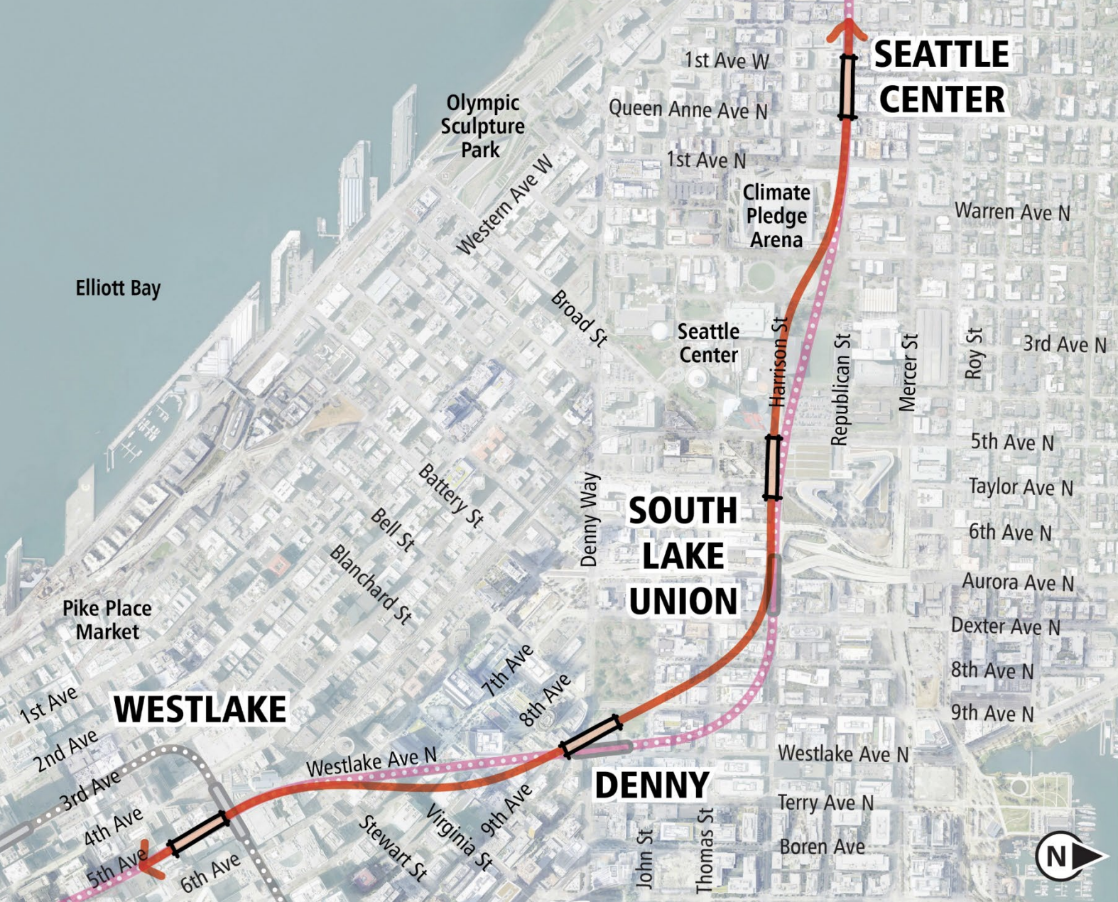 For the new alternative to stay in contention, the board would need to formally add the 5th and Harrison option to the Draft EIS, which is already being redone due to the late addition of new station proposals for Uptown, Denny, Pioneer Square, and Chinatown-International District (CID) not in the original Draft EIS published in 2022. That DEIS redo had been slated to wrap up in late-2024 barring additional delays.