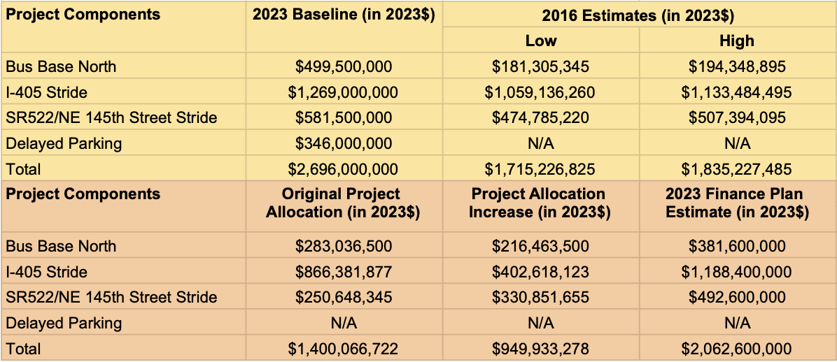 General inflation has certainly driven a hefty chunk of the cost increases along the way, but Sound Transit has also recently laid blame on higher fleet acquisition costs and fish barrier removal as cost drivers too. Those latter two costs are the consequence of staff choices though.