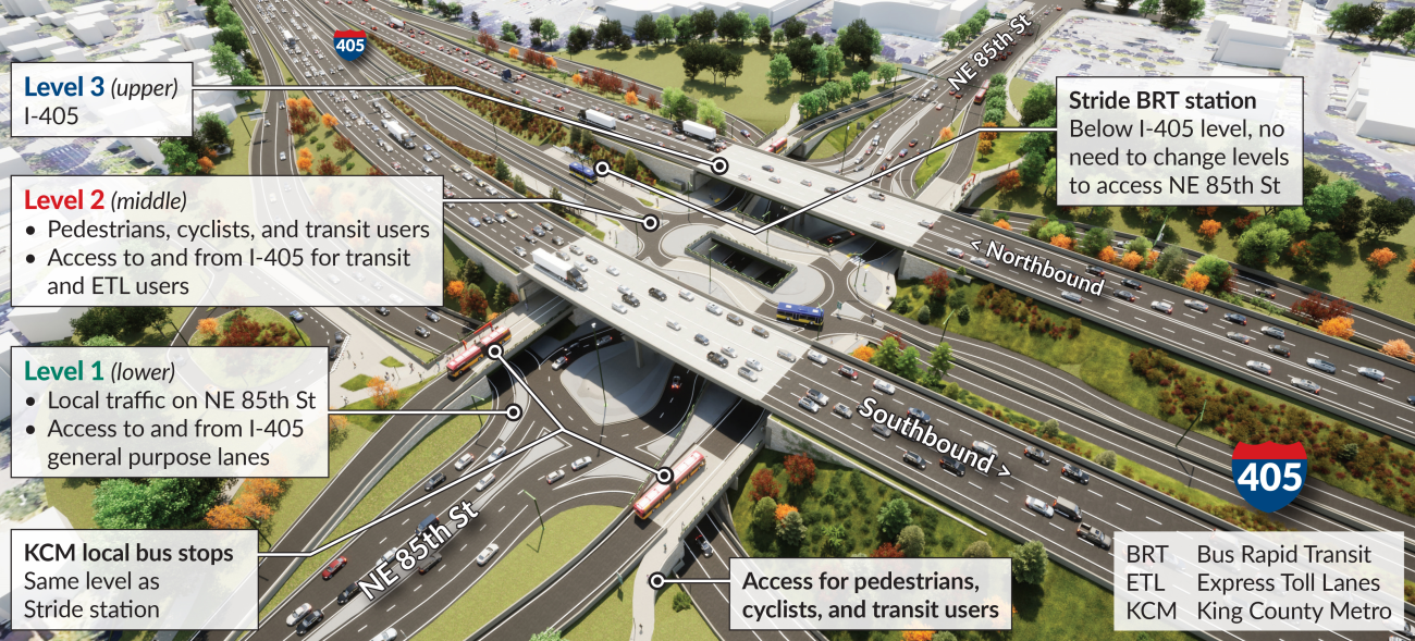 The problem with piggybacking on WSDOT’s ETL projects is that they are very behind schedule and have come in at astronomically high prices. Sound Transit, for instance, is spending over $287 million on the NE 85th Street/I-405 interchange in Kirkland just for the privilege of building a small freeway station pair. WSDOT, for its part, recently determined that a bid from Skanska to do a design-build of Bothell area I-405 ETLs, interchange modifications, and Stride facilities was of apparent best value, but that bid was nearly 40% above last fall’s cost estimates.
