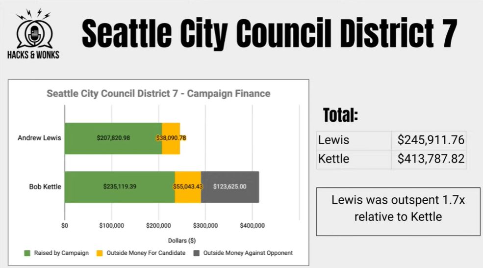 Unite Here Local 8, a union which represents hotel workers, spent heavily helping to elect Lewis in 2019, dropping $350,000 into the race. While Lewis enjoyed MLK Labor endorsements and several others again in 2023, that backing was much more tepid and did not come with the same financial muscle. Unite Here didn’t even endorse in the race, let alone invest in it this time around. Without a labor spending spree to counterbalance business spending, Lewis was outspent two to one like most of the rest of the progressive field.
