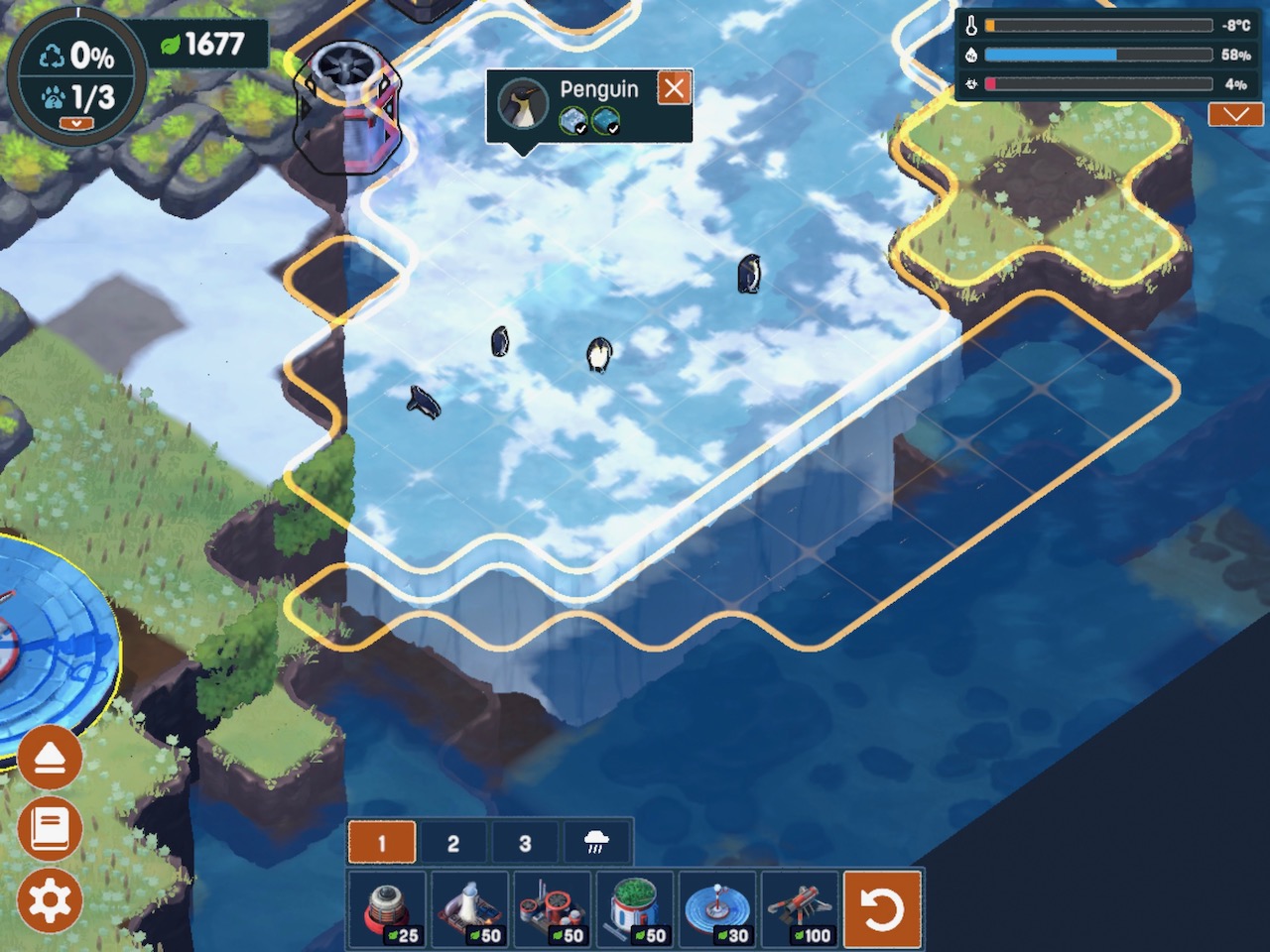 Lovely and zen casual games on a portable device make it sound like the game will fall into a certain category, so let’s dispatch that right now. This game is not going to appeal to someone that’s on the Candy Crush end of things because there’s not the casino payout flash of matching jewels. Terra Nil also doesn’t have a lot of the appeal of the idle games where points just accrue to unlock more ways of making more points accrue.