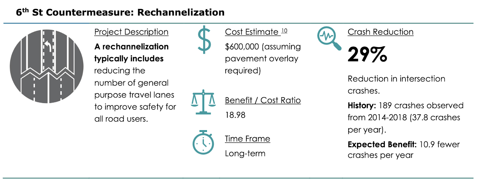 • 2020 Bremerton Strategic Road Safety Plan –  “6th Street Countermeasure: Rechannelization … 29% reduction in intersection crashes.”