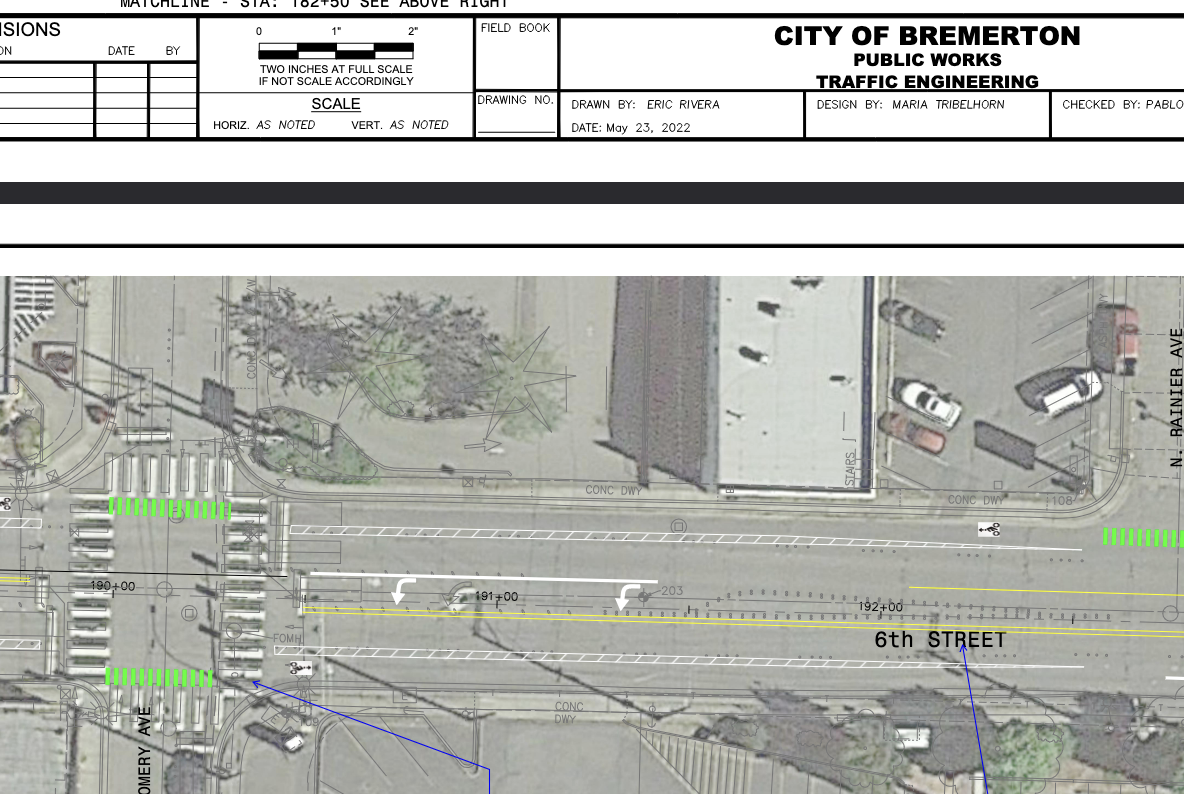 • 2020 6th Street Road Diet Traffic Engineering Maps – Created for the City of Bremerton by PH Consulting, completed as part of a grant application.