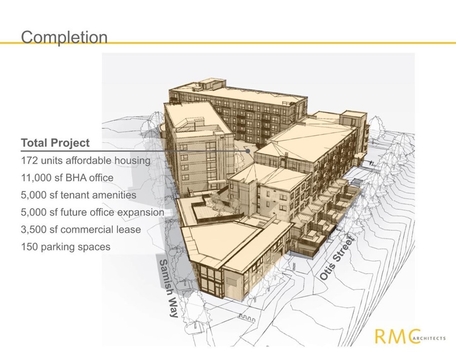 South of downtown, there is a project underway called Samish Commons, which once fully complete, seeks to redevelop a former motel site into 172 units of affordable, senior, accessible, and transitional housing, office space, as well as resident amenities such as green space. By superimposing copies of Samish Commons as infill onto downtown parking lots, the scale of alternative uses for parking downtown – mostly for housing and commerce – can be roughly estimated.