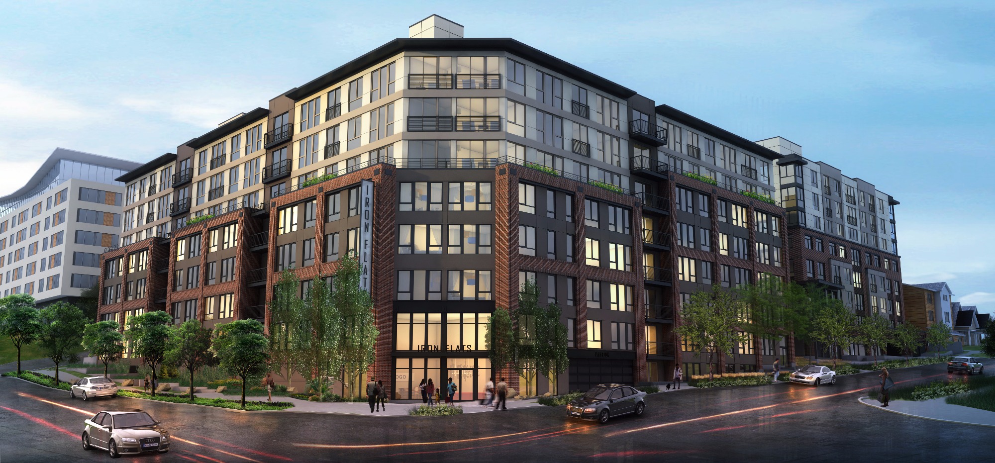 Roosevelt Development Group is building a 220 apartment complex with 269 parking stalls in front of Roosevelt High. (Credit: GGLO)