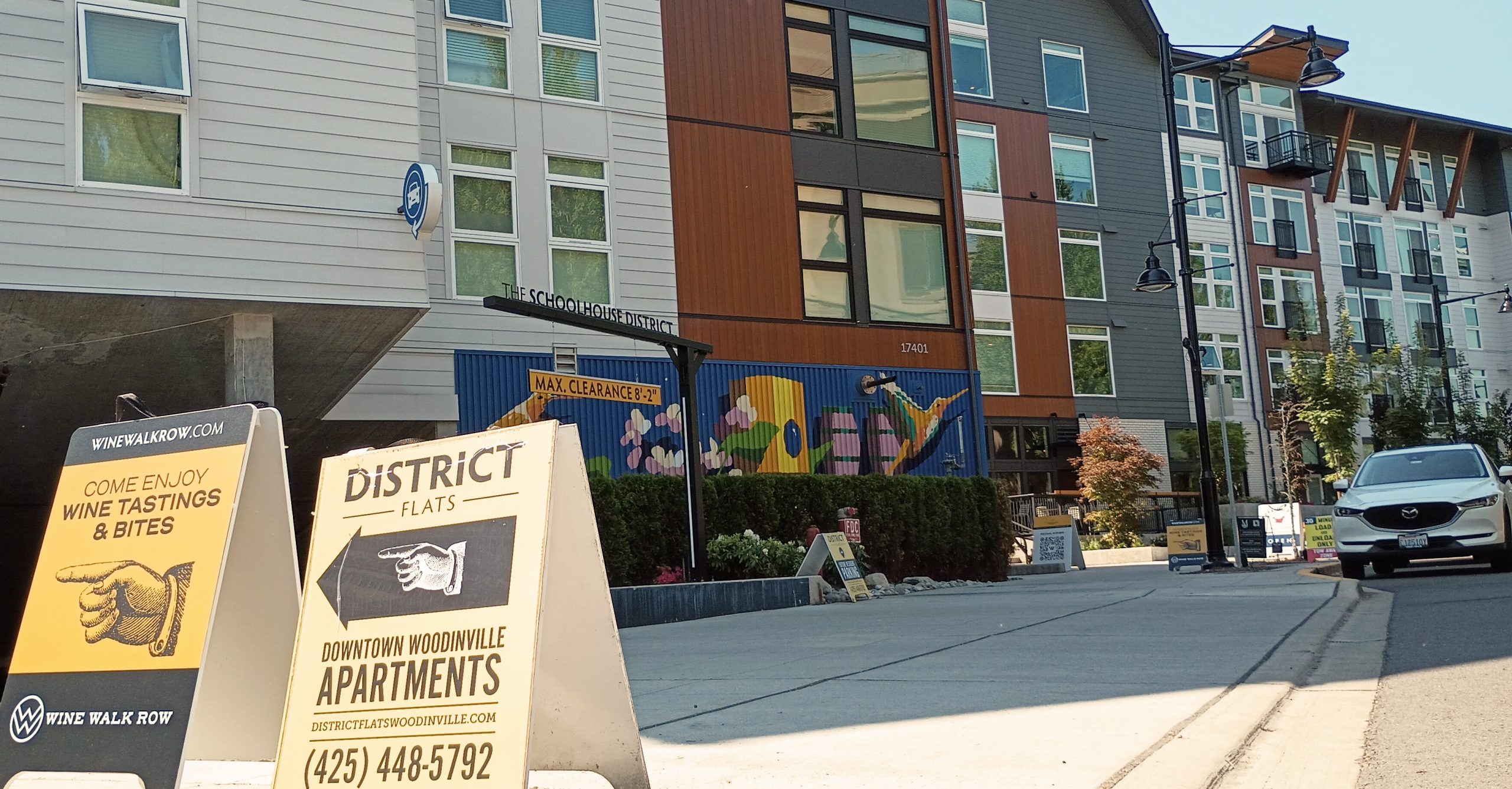 On a mid-May afternoon, I met Mayor Millman, along with an assistant to Woodinville’s city manager, at city hall for a tour of the projects that Woodinville is focusing on. Millman himself lives downtown, and not in the single-family neighborhoods that he was advocating be left alone during the legislative session. We piled into his Telsa for a whirlwind tour of Woodinville’s picturesque and growing center and its sprawling periphery.